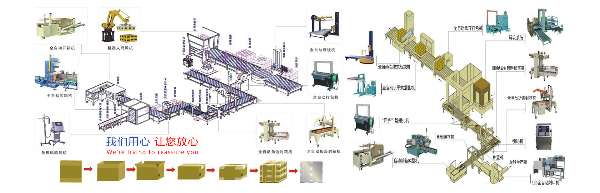 热收缩膜包机全封闭热收缩包装机纸板裹包式装箱机装箱机码垛机机器人应用开箱机封箱机后道包装整线工程